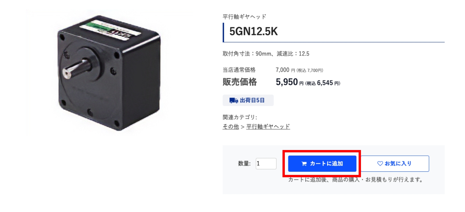 製品詳細ページにある「カートに追加」ボタンをクリックします。